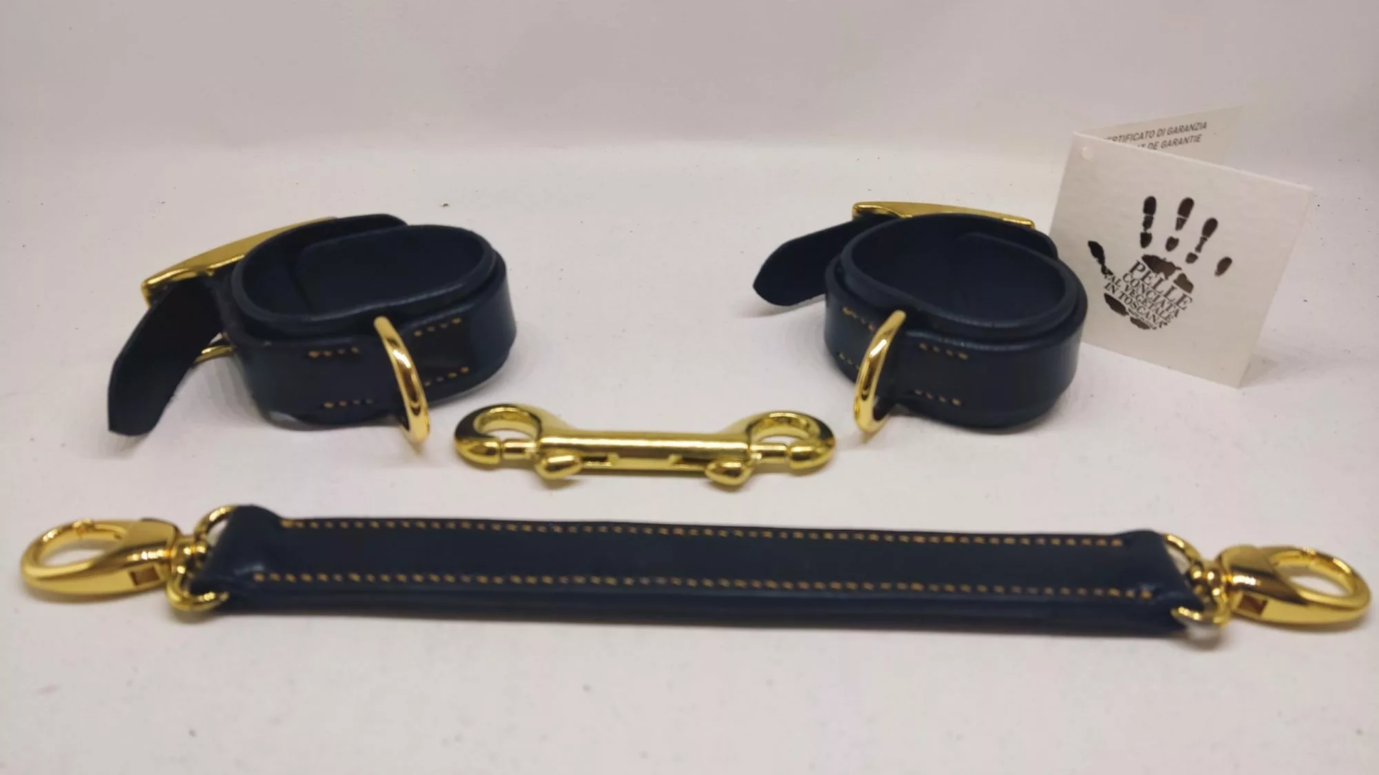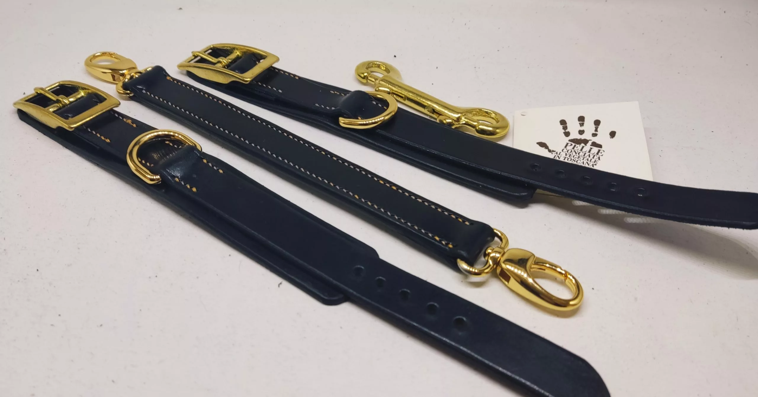 Paire de menottes en cuir tanné végétal noir (Italie)