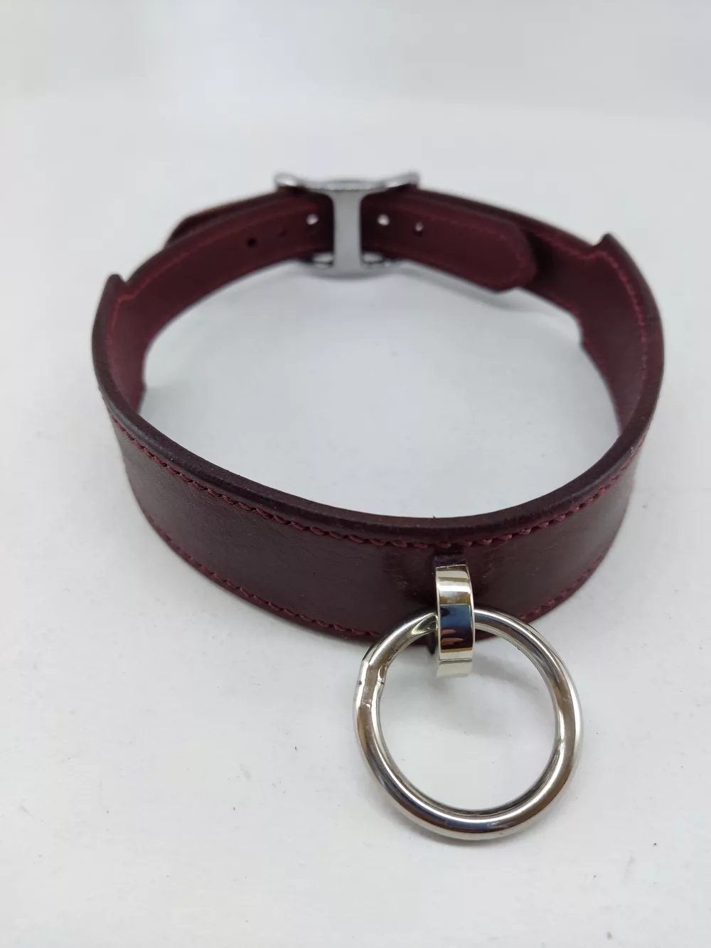 Collier en cuir tanné végétal bordeaux brillant