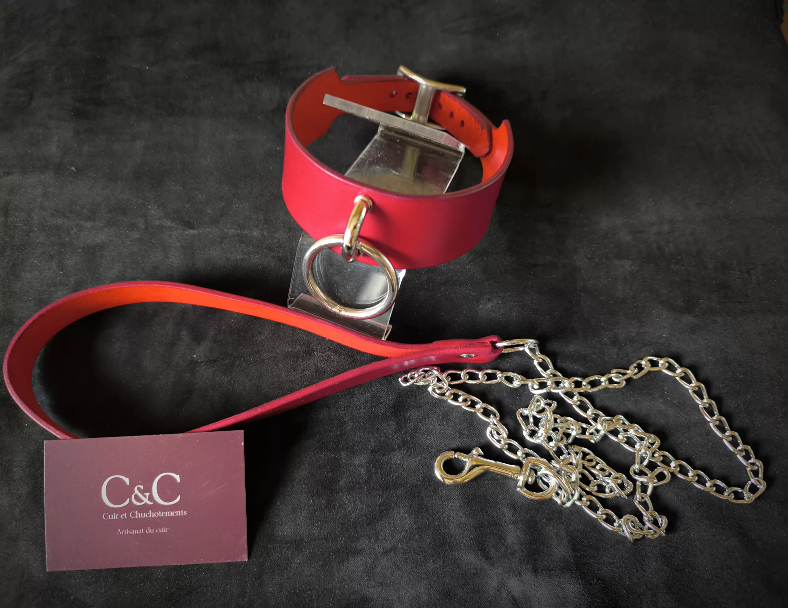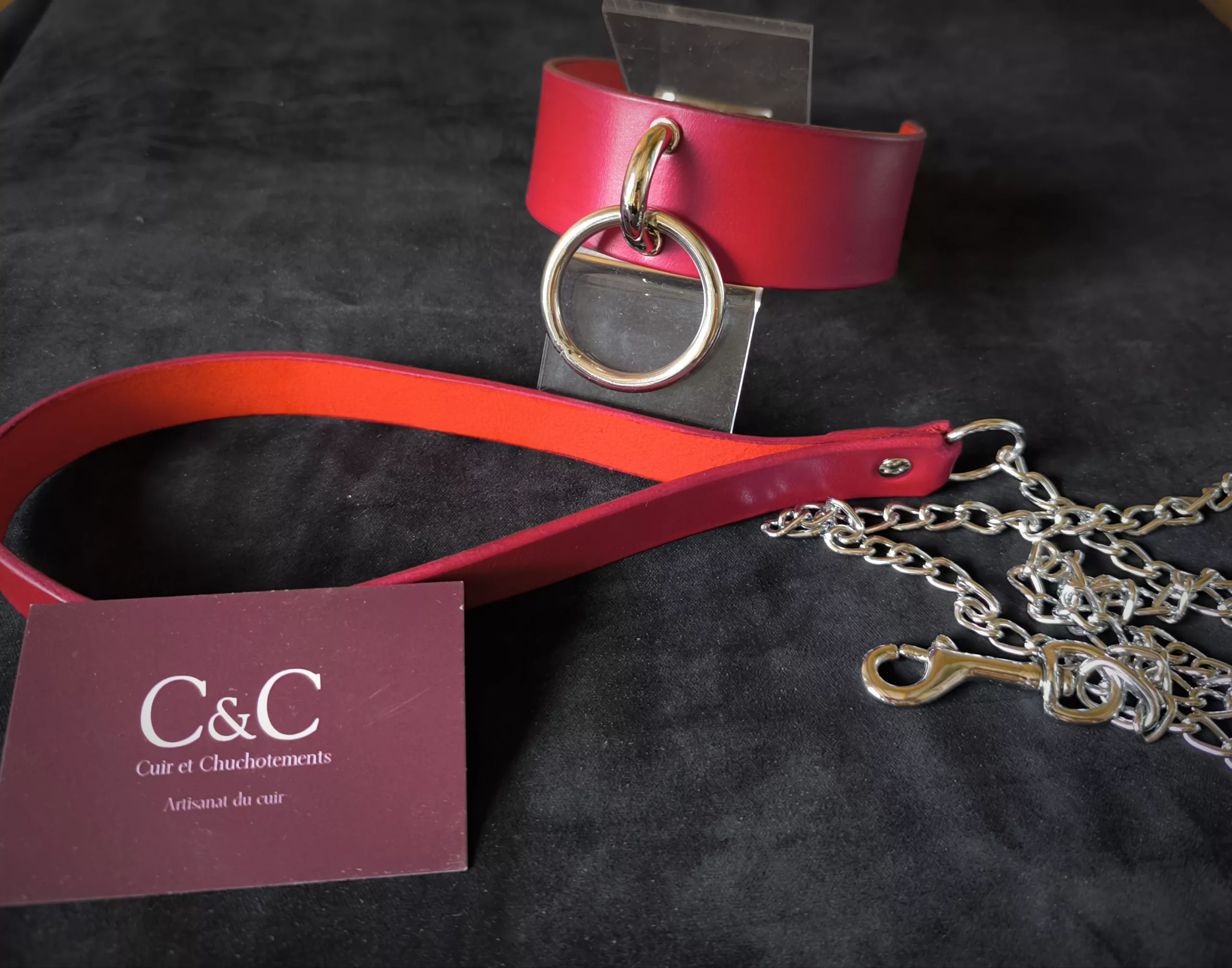 Parfait pour promener votre soumis.e en soirée ou vos jeux de domination. Ce magnifique cuir rouge sombre sublimera le cou de celui ou celle qui le portera et fera votre fierté