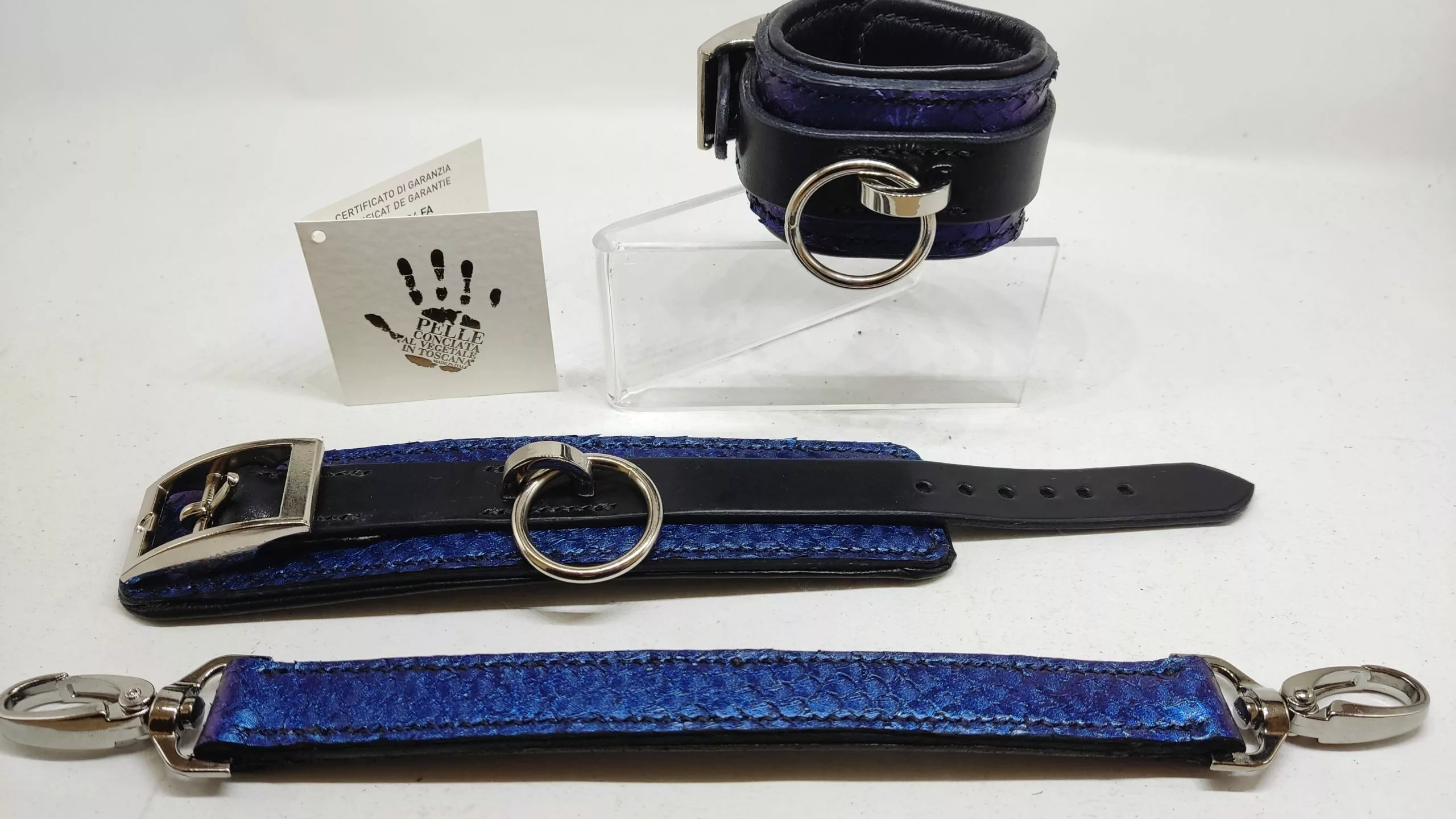 Ensemble collier/menottes Thétys. Bdsm collar and cuffs