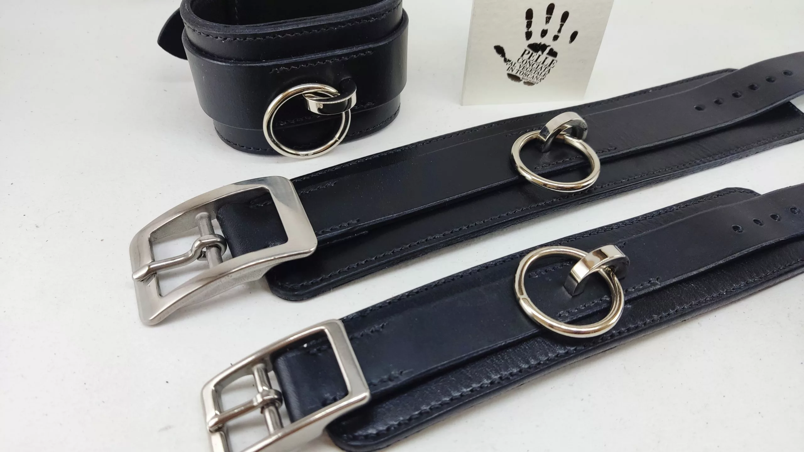 Cuir tanné végétal noir italien (autres couleurs possibles : rouge, vert foncé, cognac, bleu paon, bordeaux)