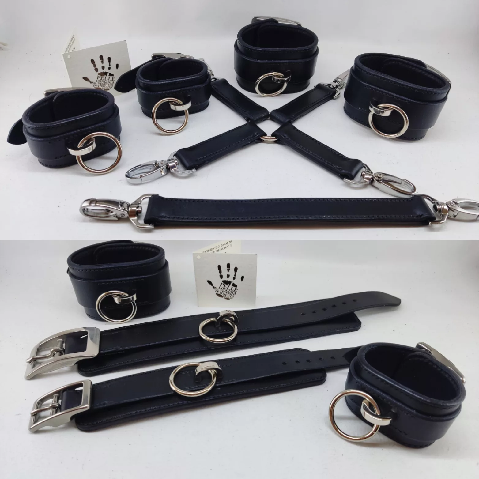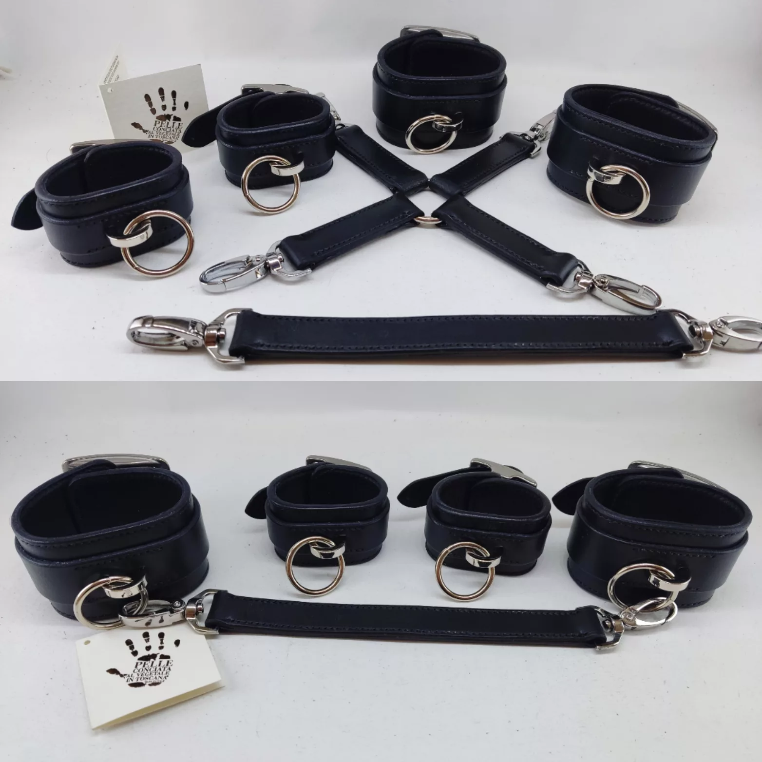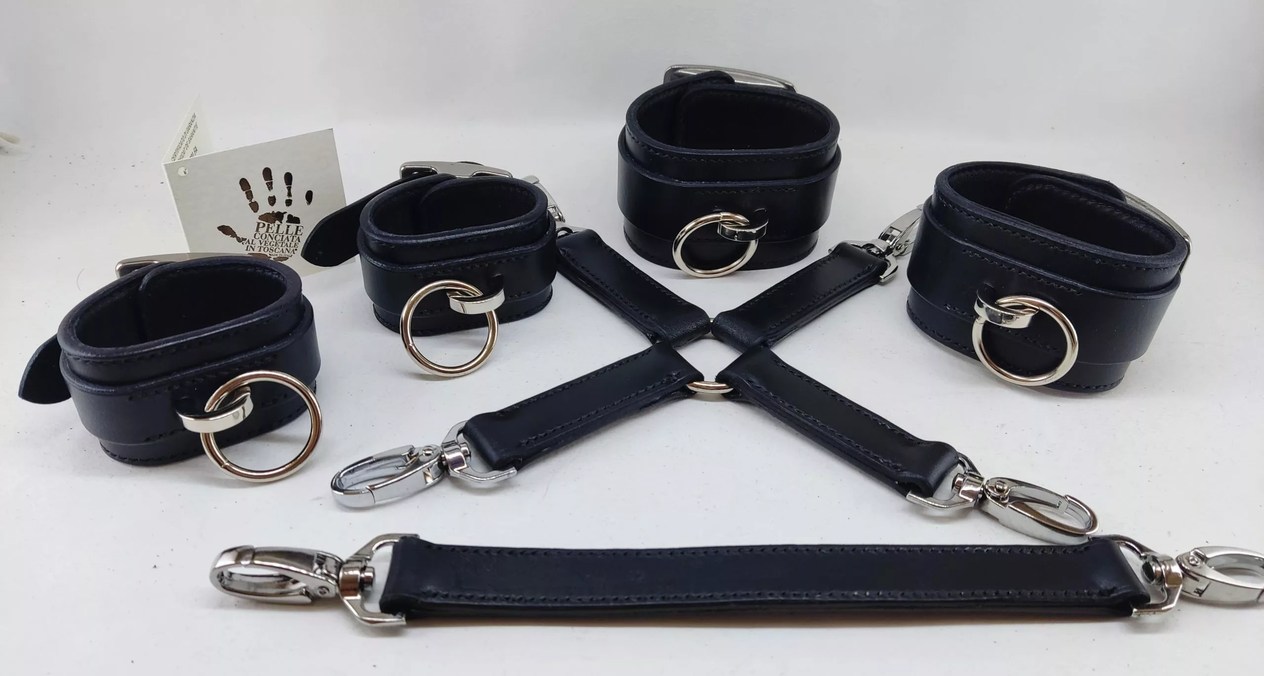 Croix de liaison à 4 branches et mousqueton + lien simple à 2 mousquetons, entièrement cousus main