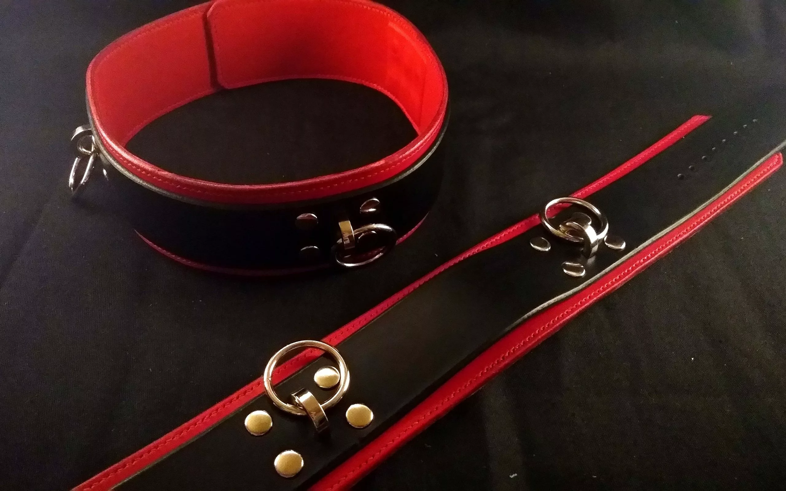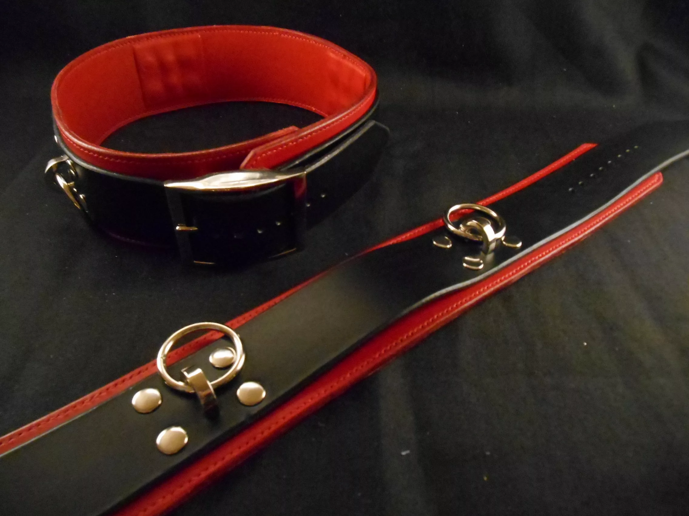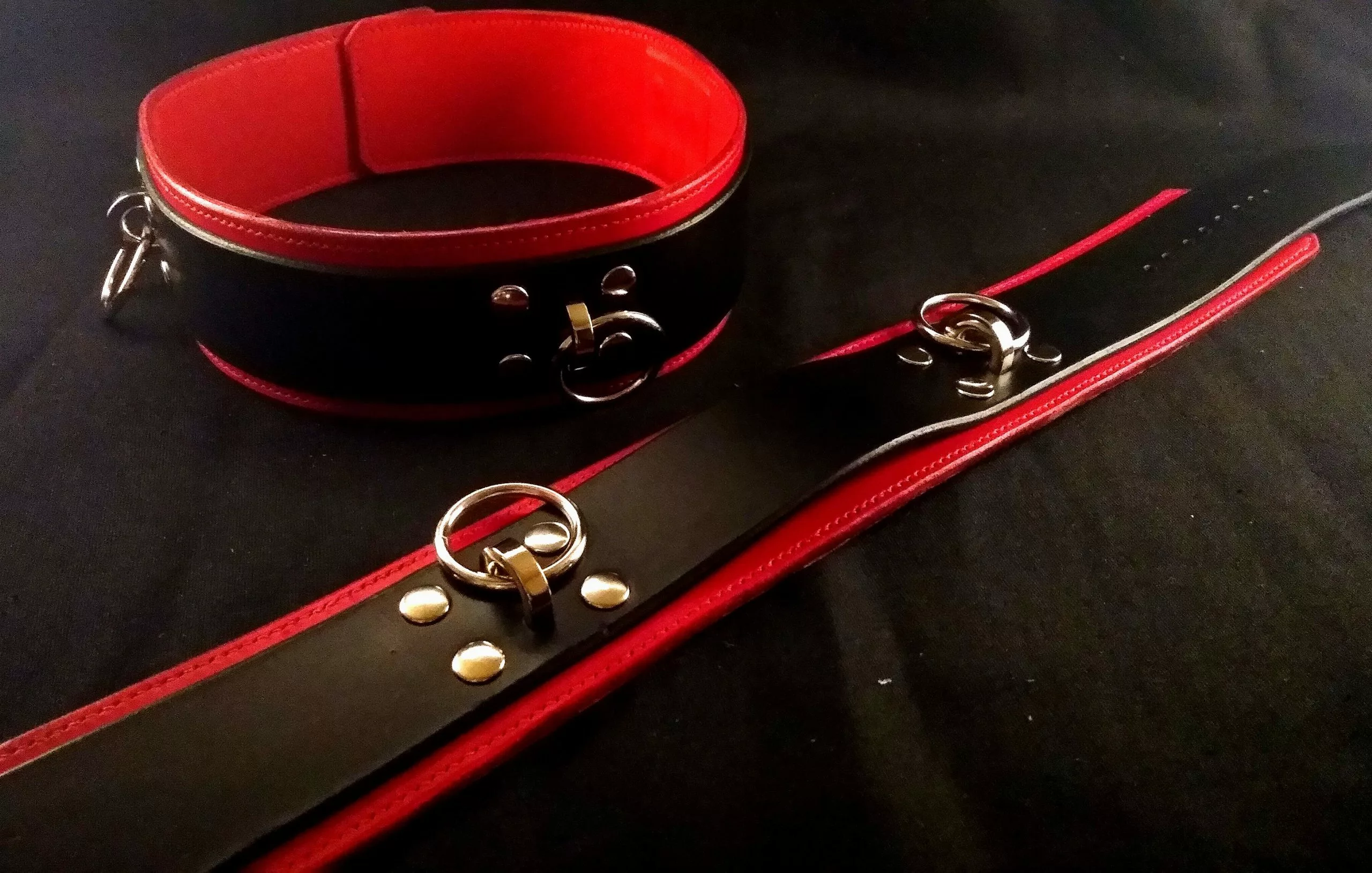 Liens de cuisses en cuir rouge et noir tanné végétal