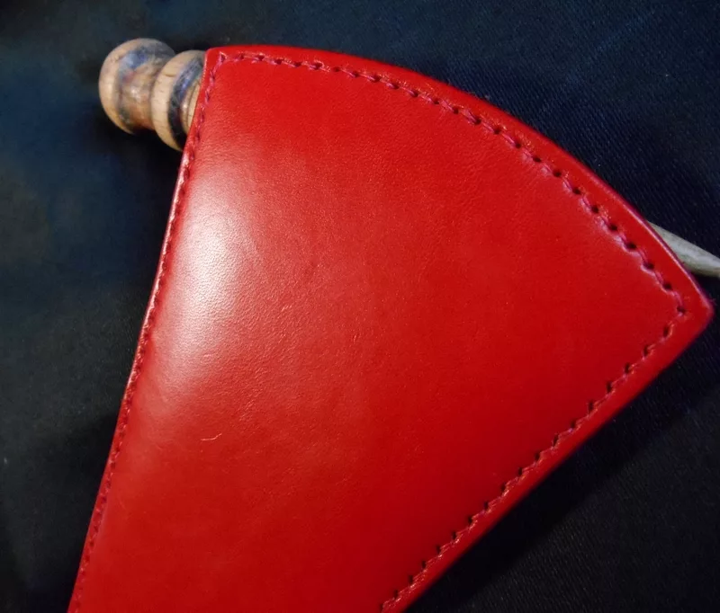 Paddle en cuir tanné végétal rouge, assez souple